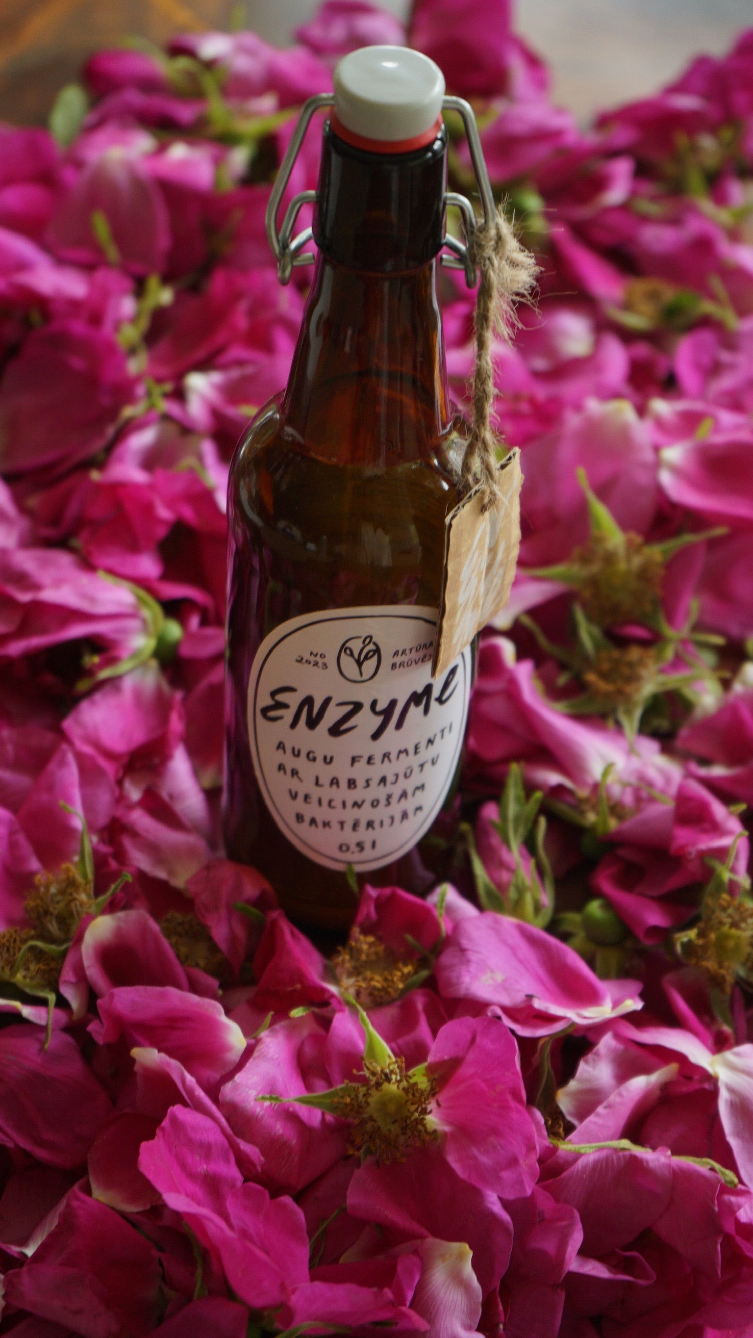 Fermentēts dzēriens no rabarberiem, rožu ziedlapiņām un laima, radīts ar Bacillus subtilis — zinātniski izpētītu fermentācijas kultūru, kas palīdz pārveidot augu savienojumus biopieejamos vitamīnos, aminoskābēs un fermentos.